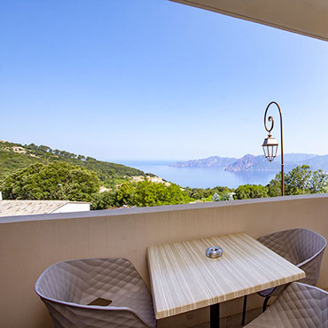 Du balcon de votre chambre, vous avez une vue exceptionnelle qui plonge sur le golfe de Porto aux falaises si caractéristiques de granite.